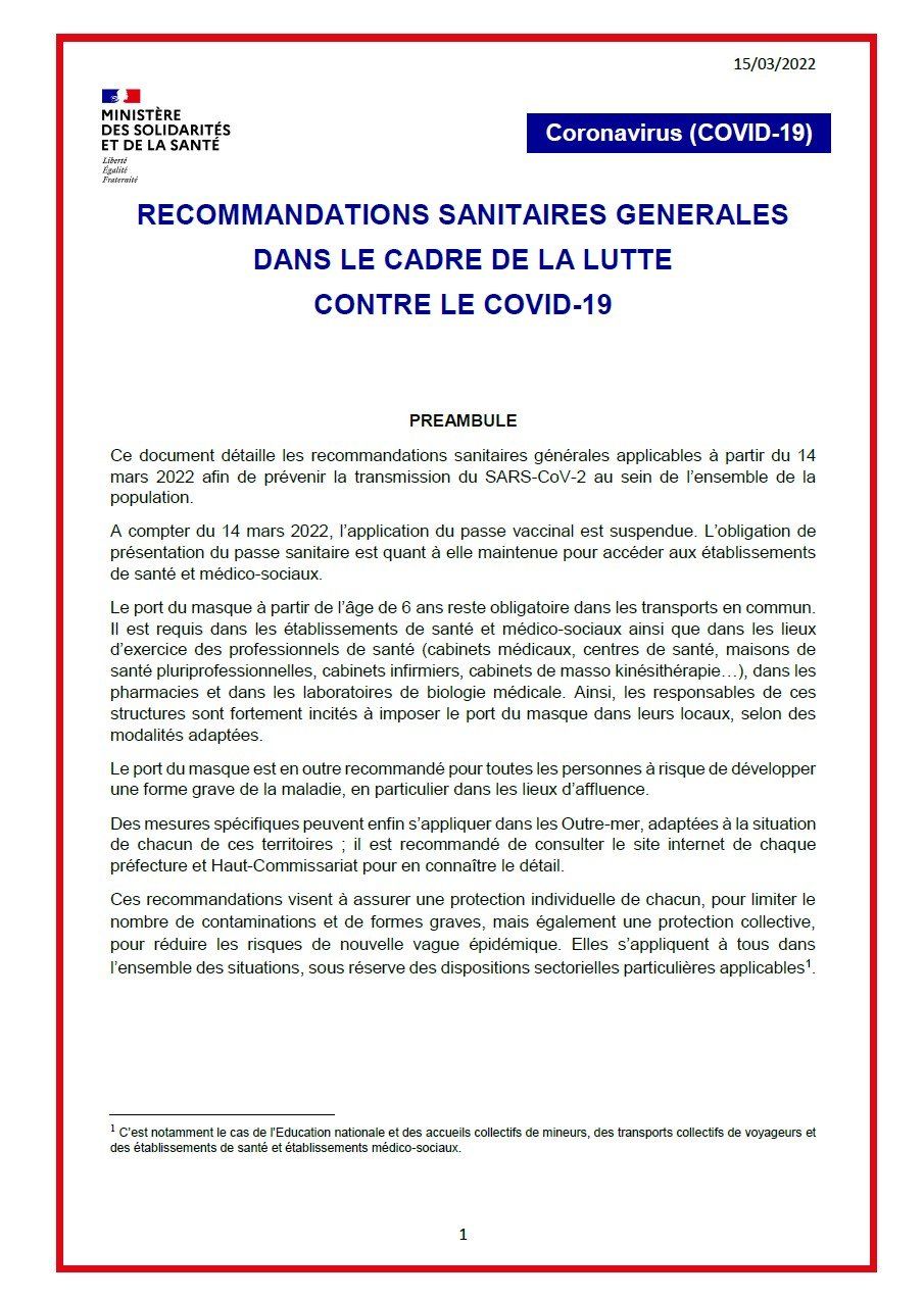 Depuis le 15 mars 2022, le Pass Vaccinal et le port du masque ne sont plus obligatoire dans les enceintes sportives.