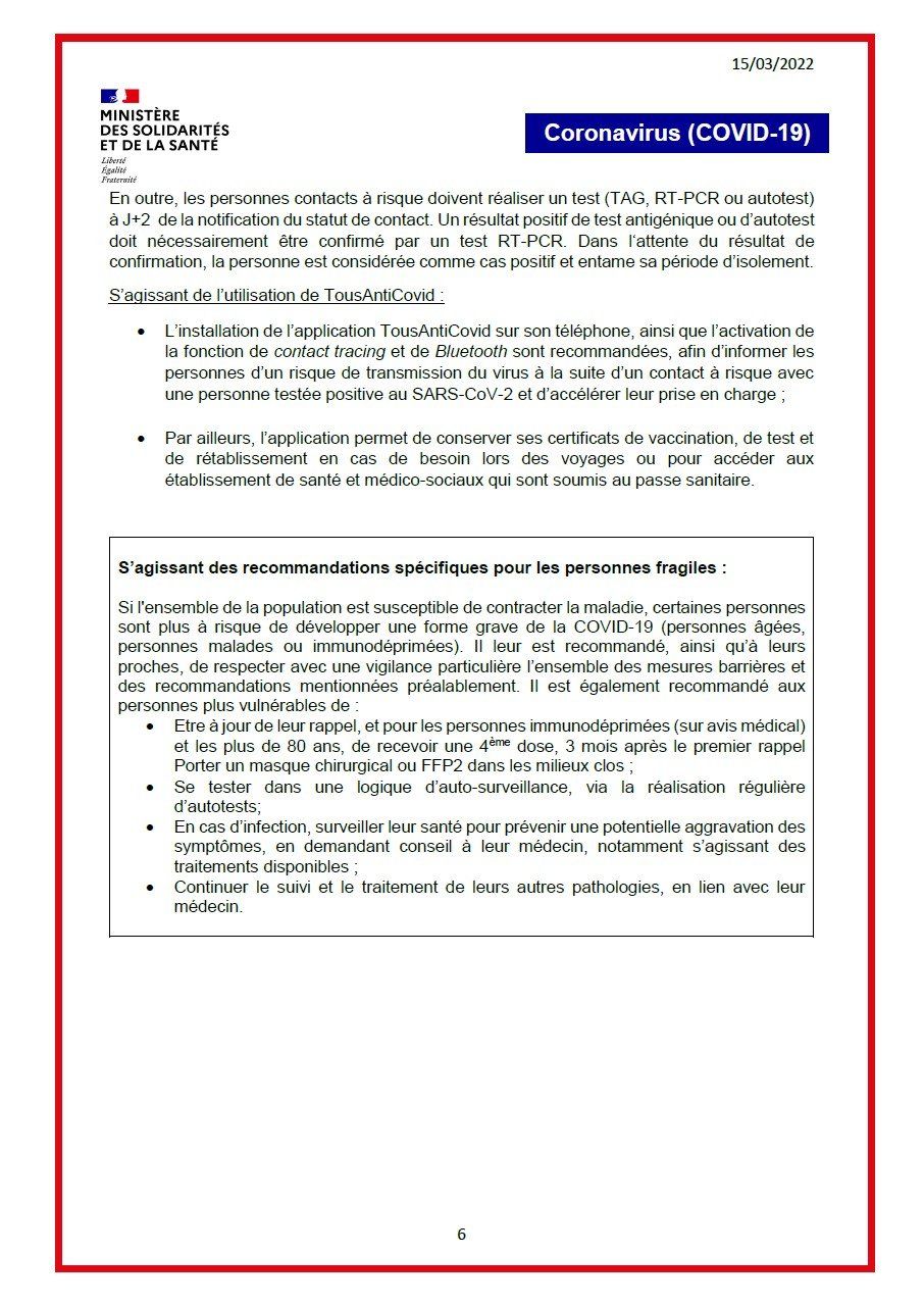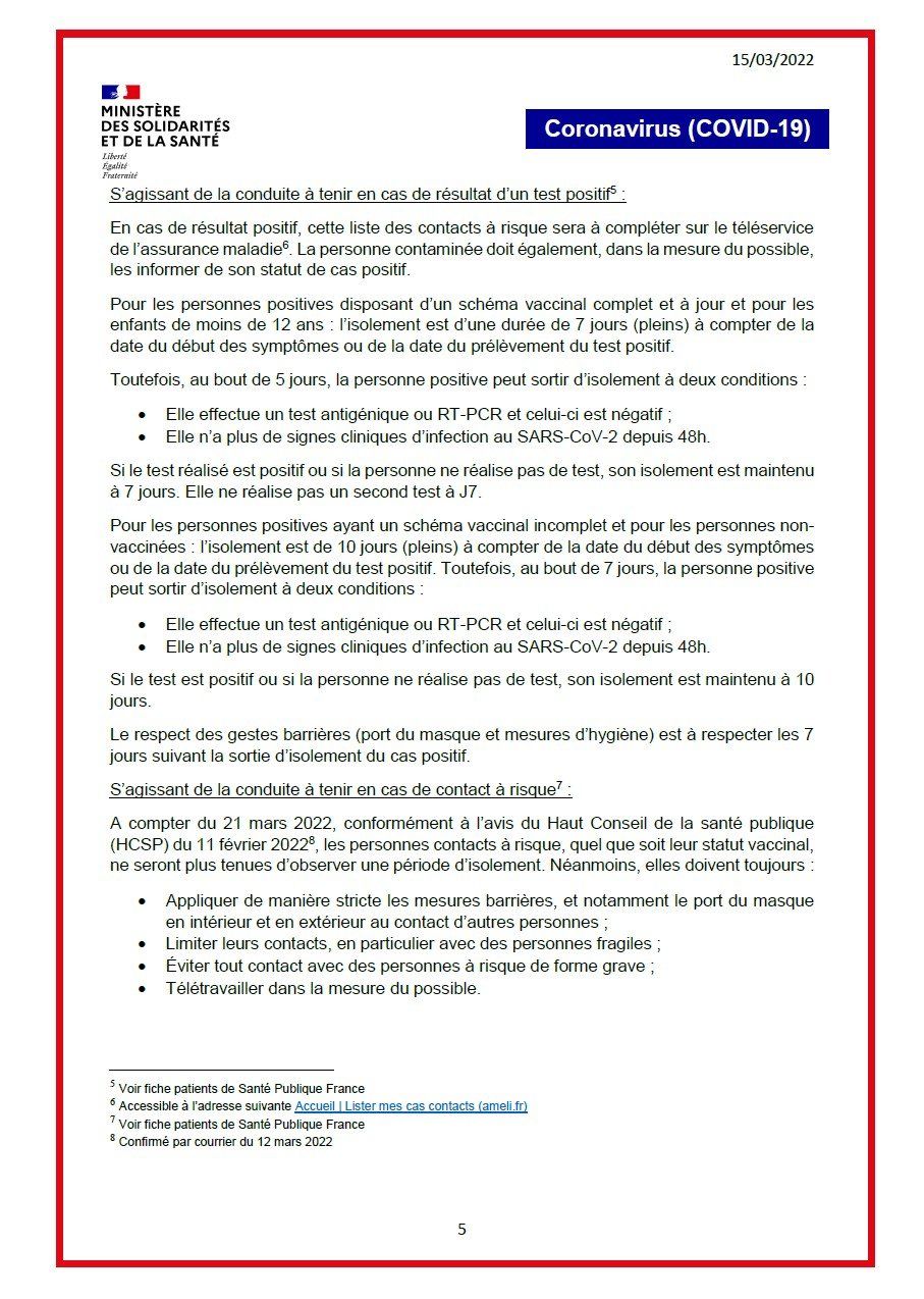 - 7 jours après l'injection pour les vaccins chez les personnes ayant eu un antécédent de Covid (1 seule injection).